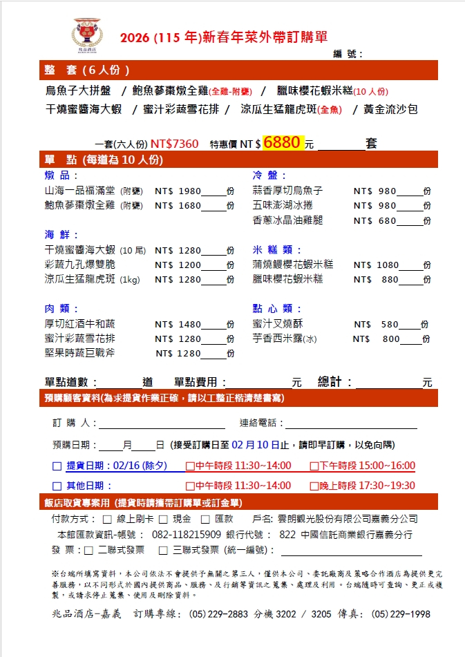 年菜外帶訂購單↓